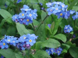 チューリップなどと寄せ植えにすると、忘れな草のやさしい花色が主役の鮮烈な色彩を和らげる役目をします。ドイツの伝説で、ドナウ川に岸に咲いていたこの花を恋人ベルタに贈ろうとして川に落ちて死んだ青年騎士ドルツの物語から名づけられました。